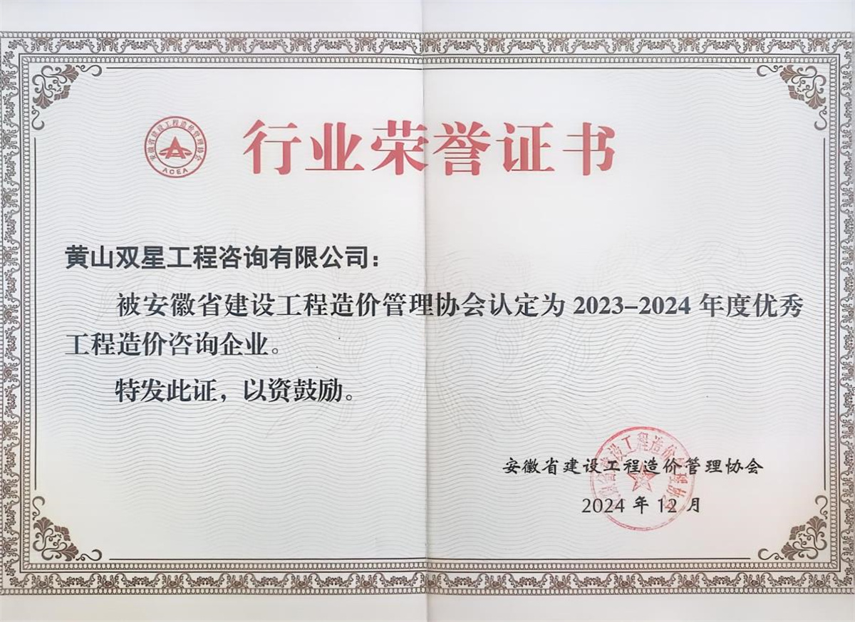 下一个:2024年黄山双星工程咨询有限公司优秀企业获奖证书